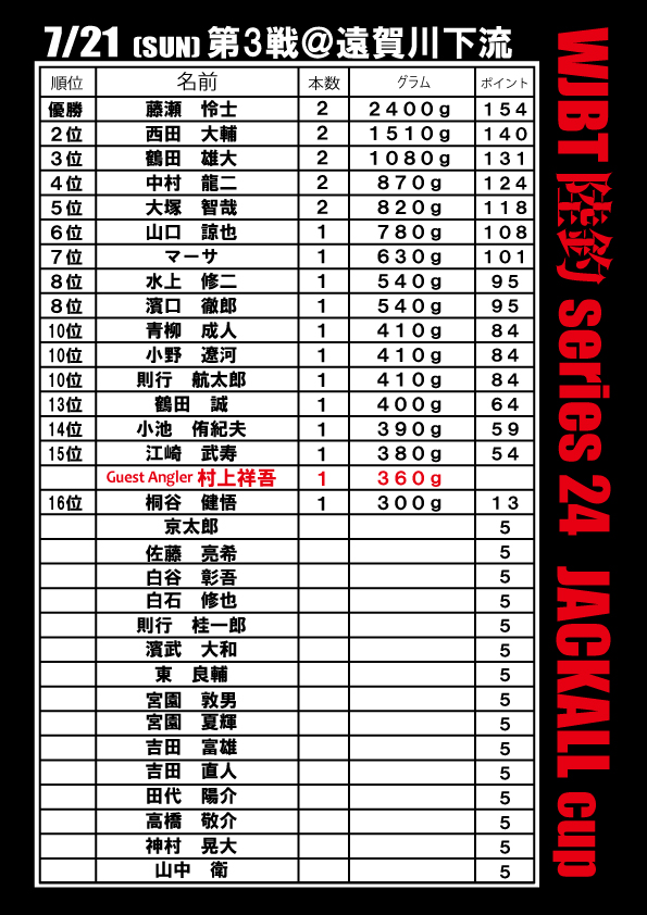 WJBT陸釣series24ではGuestAnglerにウエイトで勝利すると