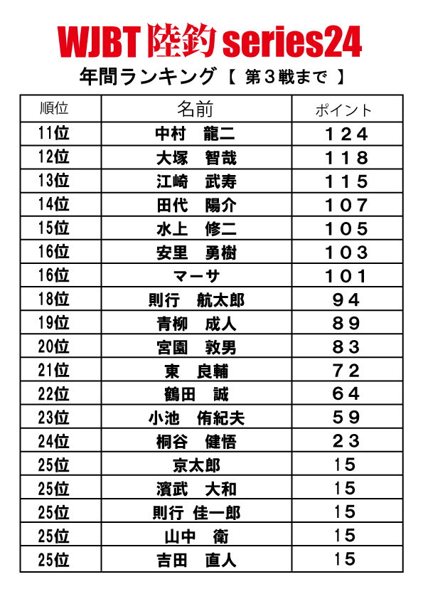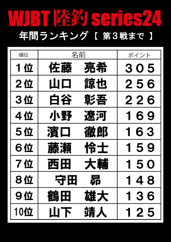 更新 ◆WJBT陸釣series24 年間ランキング 【第3戦まで】◆