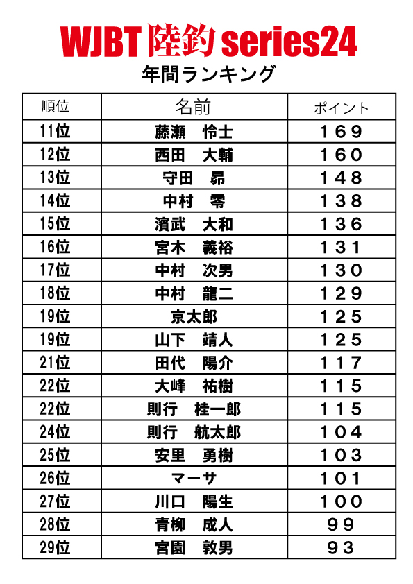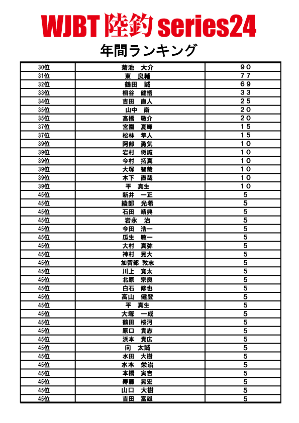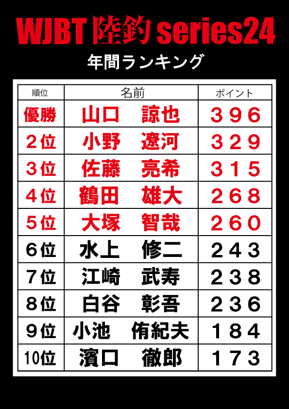 更新 ◆WJBT陸釣series24 年間ポイントランキング◆結果